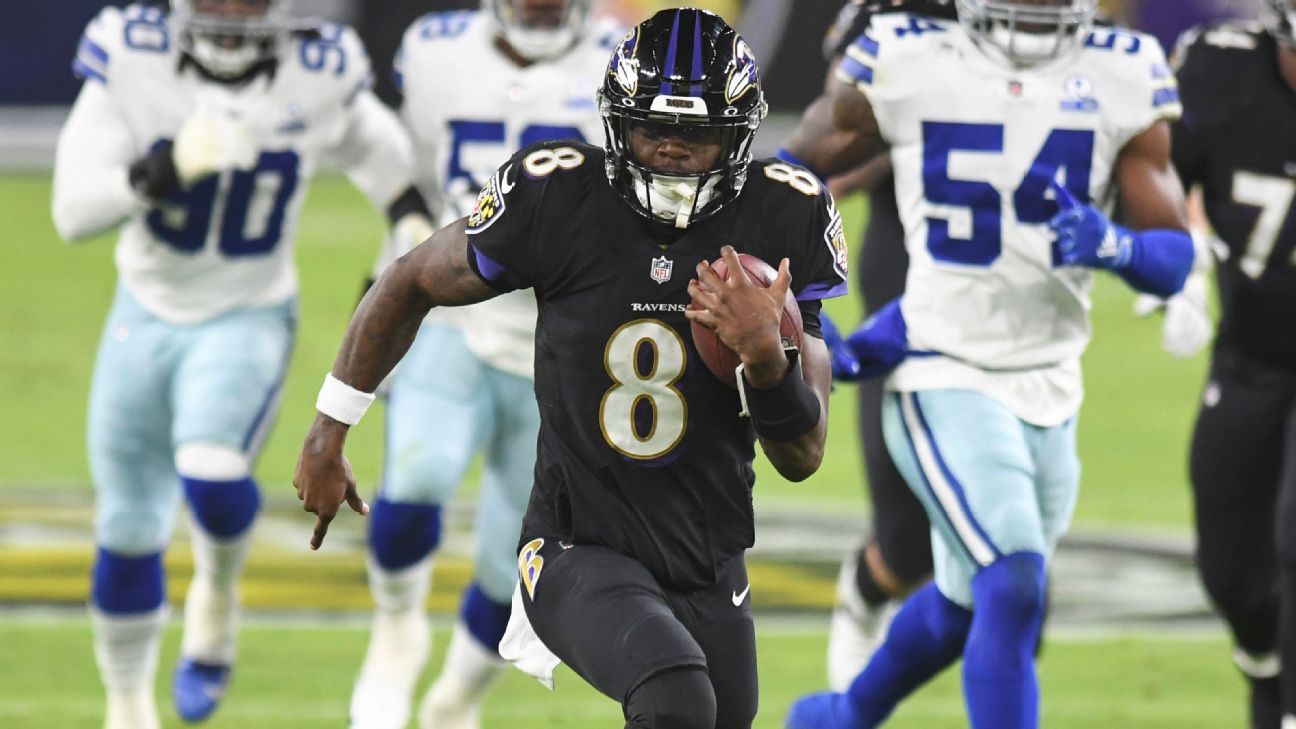 Ravens storyline to watch: Baltimore wants more efficiency out of its offense, which ranks first in total yards per game (417.5) but just 14th in points (21.5). The Ravens have a chance to get on track against the Cowboys, who have allowed 92 points in their past two home games, the most over a two-game span at home since 1960. — Jamison Hensley